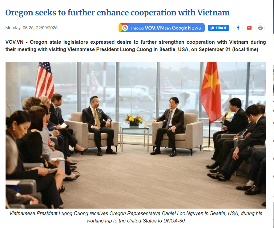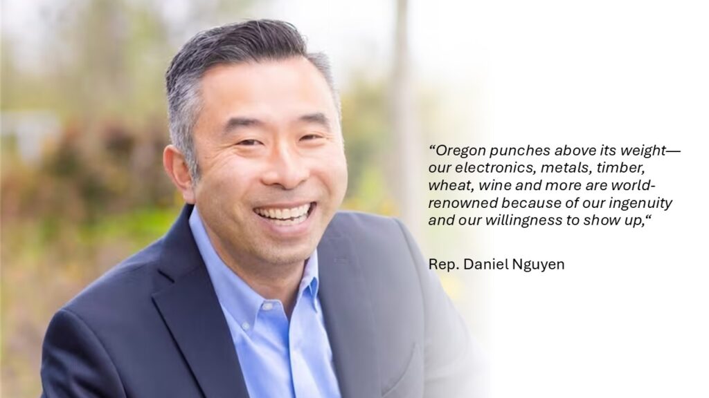 In September 2025, the Oregon Legislative Trade Caucus — co-chaired by Rep. Daniel Nguyen and Rep. Shelly Boshart Davis — led a bipartisan trade mission to Vietnam, strengthening economic, educational, and cultural partnerships across Ho Chi Minh City, Da Nang, and Hanoi. The mission marked 30 years of normalized U.S.–Vietnam relations and resulted in new agreements, including a landmark Port of Portland–Long An Port memorandum of understanding to expand sustainable trade and logistics cooperation.